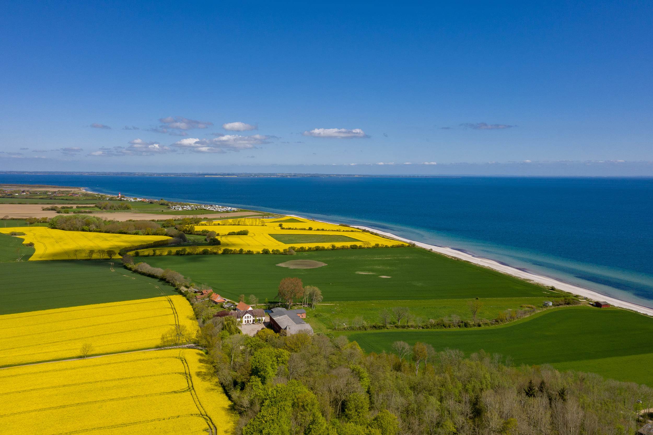 Im Hohen Nordosten Schleswig-Holsteins liegt die kleine Gemeinde Pommerby mit 160 Einwohnern. Zur Urlaubssaison durchaus stärker besucht, bietet der offiziell anerkannte Erholungsort seinen Gästen neben der ruhigen, ländlichen Idylle und der frischen Luft einen breiten, feinsandigen Strand. Auf Wander- und Radfahrwegen inmitten weiter Feldern und entlang der Ostsee geht es vorbei am Leuchtturm „Falshöft“ zum knapp 800 ha großen Naturschutzgebiet „Geltinger Birk“. Hier erleben Sie die Natur in ihrer ursprünglichsten Form. Direkt an der Ostsee und mit Weitblick auf die Küste Dänemarks befindet sich die Hofanlage Golsmaas. Die Lage am Meer und inmitten von Feldern macht den ehemaligen Hof zu einer einzigartigen Ferienidylle. Zu den vorhandenen Gebäuden kommen etwa 15.000 m² Wiese, 20.000 m² Wald sowie 830 m² Wegefläche und 117 m² Strand.